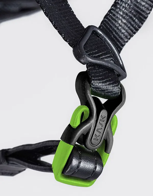 > COLOR-CODED FASTENER Lime color clasp indicates that the helmet meets EN 12492 standard