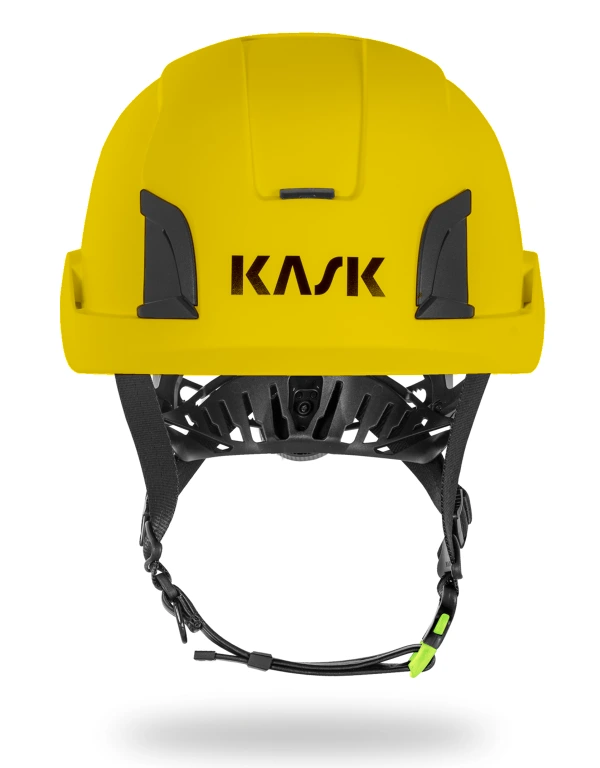 > COLOR-CODED FASTENER Lime color clasp indicates that the helmet meets EN 12492 standard